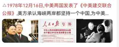 1978年12月16日,中美同时发表《中美建交联合公报》,宣布自1979年1月1日起互相承认并正式建立外交关系。