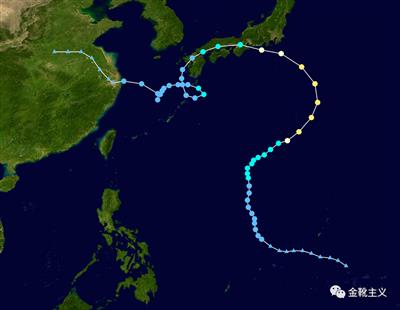 包括那一时段的超级台风“云雀”,下图是它的路径。