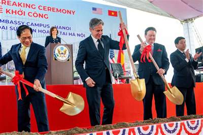 先是派出商业代表团访问越南,声称要在越南加大投资,打造新的供应链。之后是美国国务卿布林肯和美国财政部长耶伦亲自前往越南。美方还特意启动了新的美国驻越南大使馆动工仪式,显得相当热切。