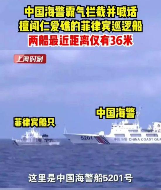 这也是为啥菲律宾的舰艇面对中国海警毫无办法的原因。8月5日,参与菲律宾巡逻艇拦截的中国海警5201号,排水量是2500吨。双方体量上就明显不是一个量级。
