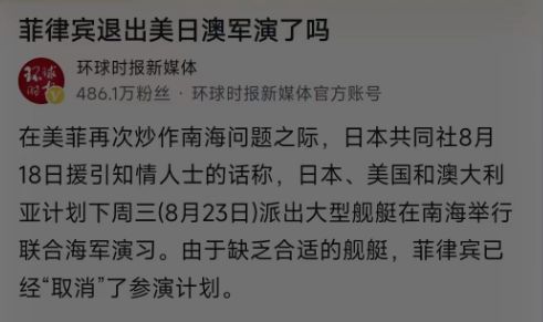 但是从菲律宾撤销8月23日和美日澳演习的计划看,菲律宾并没有忘记自己不是中国的对手,而且好像变聪明了。