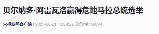 据央视新闻报道,当地时间8月20日晚间,危地马拉最高选举法院网站发布的计票结果显示,根据对95.29%选票的统计,“种子运动”党候选人贝尔纳多·阿雷瓦洛的得票率为59.12%,以明显优势领先于全国希望联盟候选人桑德拉·托雷斯的36.15%,在大选中获胜。