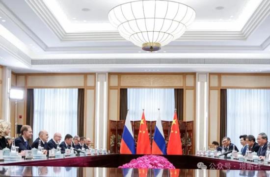 米舒斯京在与中国国务院总理李强举行小范围会谈时指出:“尽管面临种种阻碍及西方的非法制裁,俄中关系仍处于数百年历史中的最高水平,并继续在各方向上蓬勃发展。”