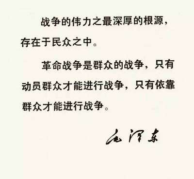 80年前,抗日战争时期,毛泽东发表《论持久战》,曰:兵民是胜利之本,战争的伟力之最深厚的根源,存在于民众之中。
