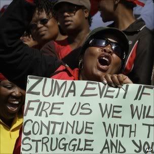 祖玛掌权已经两年,但是两年来却无法改善南非国内劳动群众的生活条件和基本权益。工人的罢工浪潮再次挑起人民对非国大执政路线的质疑。因此,这次的罢工,不仅仅是工人提出经济诉求,也是对政府的一次政治表决。这次的罢工比起2007年的大罢工起着更大的影响力,也显现了南非工人团结起来的巨大力量。