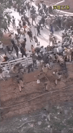 在印度农民大军刚刚接近新德里的时候,印度警察大批出动设置了大量路障,企图拦截印度农民军。但是,印度农民军出动拖拉机对路障进行反复冲刺碾压。掩护骑马的印度农民首先冲开路障,印度农民骑着高头大马,拿着长棍对印度警察阵列发动了长矛骑兵冲锋。