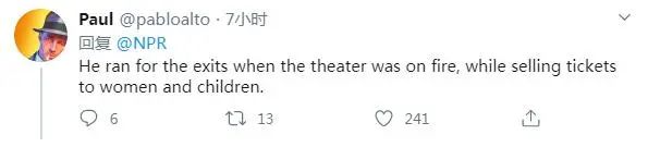 美媒获取的资料显示,伯尔在小圈子聚会中曾警告称新冠病毒“传播力非常强”,疫情可能会非常严重,但在公共场合时,他却对疫情轻描淡写。此事被曝光后,有美国网友愤怒地指出,伯尔此举就好比“戏院失火时他从出口溜走了,同时还顺手把戏票卖给了妇女儿童。”
