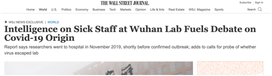 今年5月23日,《华尔街日报》网站刊出所谓“武汉病毒所研究人员染疫”的 “独家爆料”,爆料内容自于一份美国情报报告。