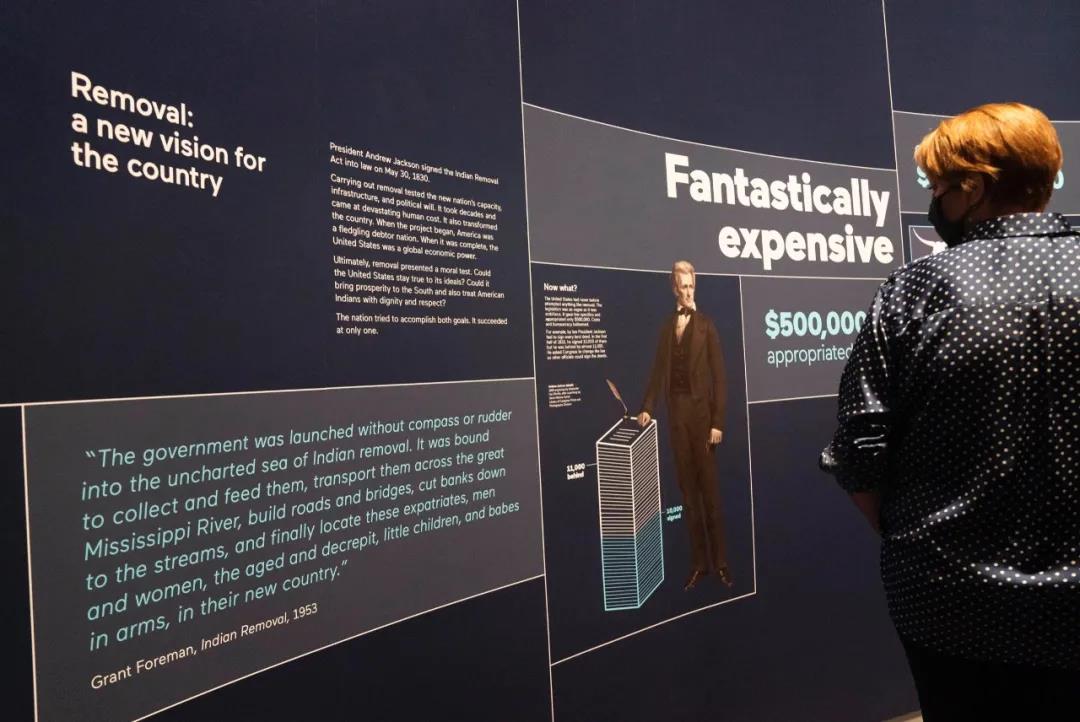 这是7月8日在美国华盛顿印第安人博物馆举行的《美国人》展览上拍摄的《印第安人搬迁法》相关内容。新华社发