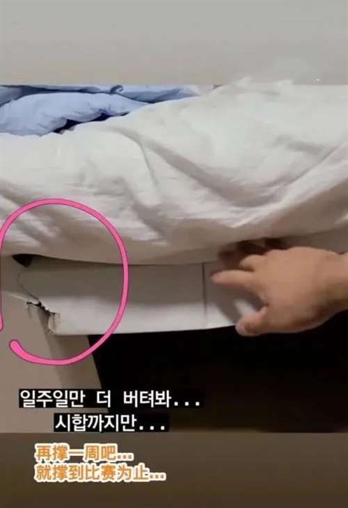 韩国某位举重运动员在社交媒体上拍照抱怨纸板床