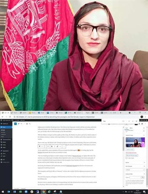最典型的一个例子,阿富汗首位女市长、27岁的扎丽法•加法里。她父亲阿卜杜勒·加法里将军于2020年11月15日被枪杀,她自己也遭遇刺杀(未遂)。