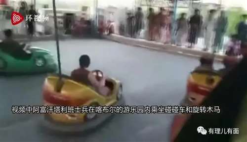 塔利班士兵控制阿富汗首都喀布尔后,在游乐园内玩起了碰碰车和旋转木马。他们玩得兴致勃勃,现场不时传出大笑和欢呼声。有人手握长枪坐在碰碰车上,互相追逐嬉戏。