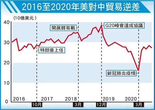 特朗普的政纲综合了对经济诉求和身份政治诉求的回应,将新自由主义帝国扩张给“本部”带来的高昂的运营成本解释为美国人与外国人之间的冲突。对于经济诉求,特朗普提出“雇美国人,买美国货”,削减美国贸易逆差,促进制造业回流。为此,他发动了对中国乃至许多美国盟友的贸易战。但这恰恰与帝国的支柱之一美元霸权相互矛盾,因为长期以来,贸易逆差恰恰是美国对外输出美元的重要方式。寻求增加贸易顺差会堵塞美元的输出渠道,削弱美元霸权。这一做法在实践中也根本没有达到预想的目的:2020年,美国对中国的贸易逆差再创历史新高。