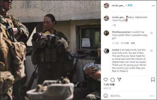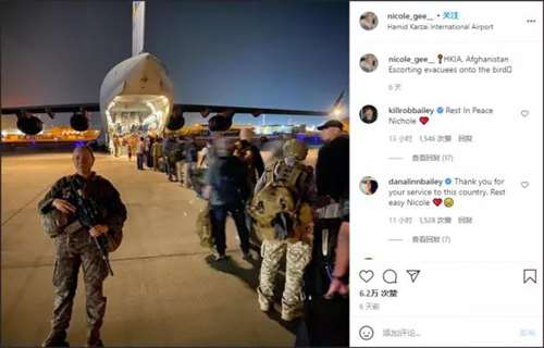 她生前最后一条Instagram动态发布于6天前,照片中,她配枪“守护撤离民众进入飞机”。