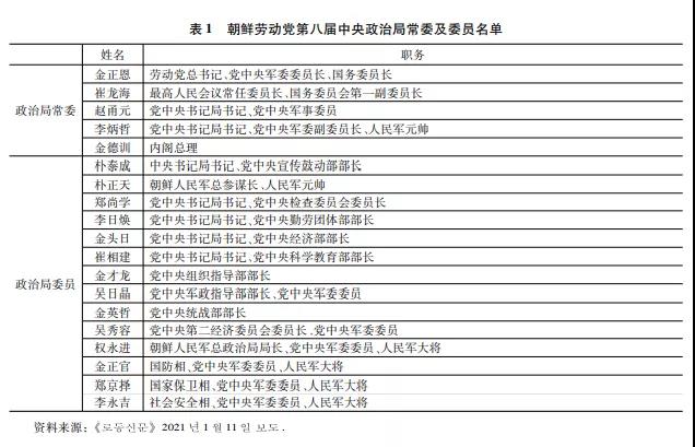 表1朝鲜劳动党第八届中央政治局常委及委员名单