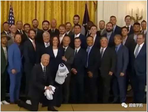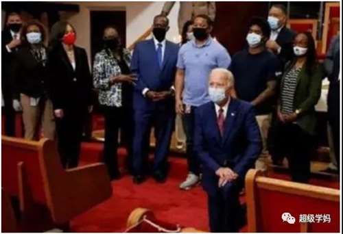 跪黑命贵,跪哈里斯(7月2日),跪文在寅(5月22日),跪以色列总统(6月28日),跪美国世界大赛冠军球队(7月5日),最近一次跪是跟WNBA冠军合影(8月24日)。