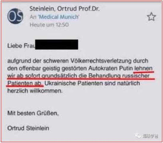 3月4日,德国媒体报道,德国慕尼黑最大综合医院一名医生,个人宣布不再治疗俄罗斯患者。