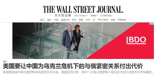 这也跟《华尔街日报》最近的一篇文章——“美国要让中国为乌克兰危机下的中俄关系付出代价”的内容相互印证,可谓图穷匕见。