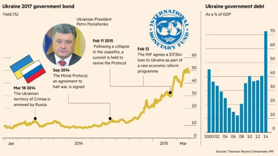自苏联解体以来最严重的危机已过去三年(注:指2014年克里米亚危机),乌克兰正处于又一次革命(Maiden)边缘。在国内武装冲突、腐败的国家行政机构以及沉重的债务负担作用下,乌克兰经济瘫痪,几乎没有复苏迹象,同时,贷款还在增加,结构性调整要求越来越严格(译注:指国际金融机构提供贷款时附带的结构性改革要求)。人民的生活水平、贫困和不平等处于迄今为止最糟糕的水平。市场转型改革的错误药方、贷款资金的不良管理和盗贼统治集团(kleptocratic)的贪腐加深了有毒的债务依赖,并使之成为俄罗斯与美国/欧盟之间新的地缘政治对抗的操纵工具。欧盟与乌克兰自贸协定(DCFTA)谈判中的债务地缘政治使乌克兰失去了残存的事实主权,让稳定的地缘政治秩序变得越来越不可能。