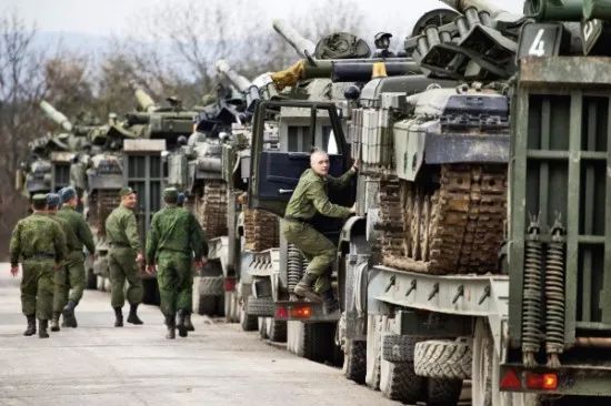 ▲2014年3月26日,乌克兰从克里米亚撤军,大量坦克被运离军事基地