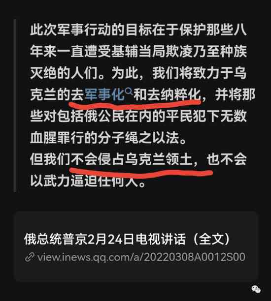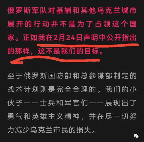 虽然普京反复重申“去军事化”的意图,但是,看起来各方在战争初期都有主观主义,即主观地认为俄有“去军事化”之外的更高目标。