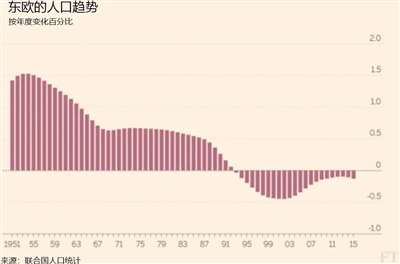 许多像叙利亚这样饱受战争摧残的国家遭受了巨大的人口损失,但自1950年代以来,世界上从未出现过整个地区和几十年的人口下降。联合国估计,东欧大约有2.92亿人,这比1990年代初期减少了1800万,或者说从该地区消失的人口数比荷兰人口还要多。