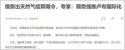 第二个问题:俄罗斯要求“不友好国家”必须采用卢布购买石油和天然气。