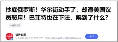 比如俄罗斯联邦储备银行在俄乌战争之前的股价是15美元,战争发生以后英国的金融机构要求老百姓卖出,结果华尔街在0.5美元的时候抄底,等华尔街抄底以后就停牌了。