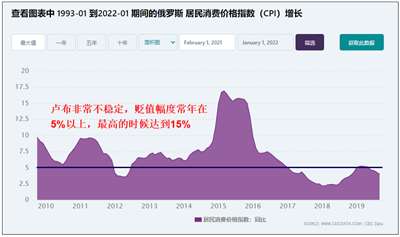 大家看下面一个图:卢布的贬值幅度常年在5%以上,最高的时候曾达到15%以上。