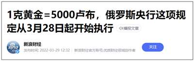 于是,俄罗斯给了一个友情提示:俄罗斯央行宣布从3月28日开始恢复在内部市场从信贷机构以固定价格购买黄金,购买价格为每克5000卢布。