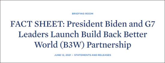 去年6月,美国白宫正式发布旨在与中国“一带一路”倡议抗衡的全球性基础设施建设计划,将其命名为“重返更好世界倡议”(B3W)。