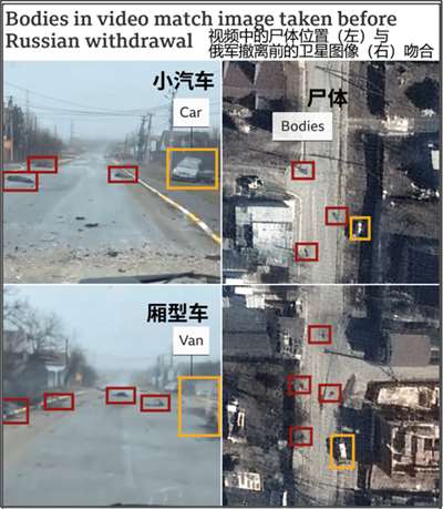 一些美国媒体通过3月19日的卫星图片认为“许多平民已经在三周多前遇害,当时俄军正控制着布查市。”
