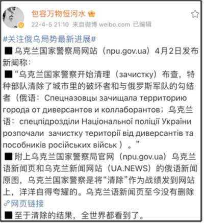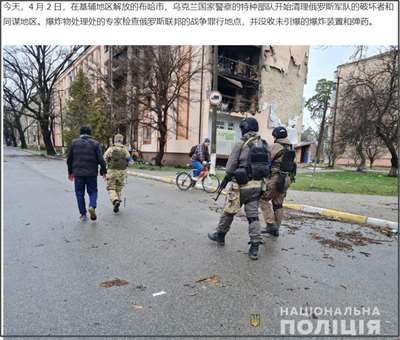 在4月2日,乌克兰国家警察局网站,曾经发表新闻称“开始清理布查”,乌克兰特种部队清除了城市里的破坏者和与俄罗斯军队的勾结者。