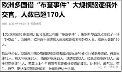 然后欧洲多国也响应美国号召,开始通过“布查事件”大规模驱逐俄罗斯外交官,截止4月5日已经驱逐了超过170人。