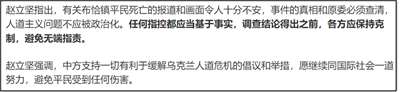 我们可以看看我们国家对“布查事件”的态度。