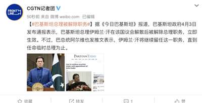 据《今日巴基斯坦》报道,巴基斯坦政府4月3日发布通报表示,巴基斯坦总理伊姆兰·汗在该国议会解散后被解除总理职务。
