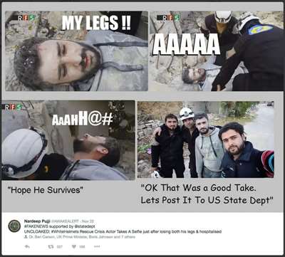 这个标榜中立、无涉政治的组织,实际上是披着“人道主义救援”外衣的“谣言制造机”。有关资料显示,该组织的资金来源主要是美国、英国以及荷兰等国,其创始人梅西耶尔则是英国前情报官员。