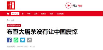 中国仅仅只是呼吁各方保持克制,敦促尽快调查,就被法国国际广播电台、自由亚洲电台等扣上了冷漠无情的大帽子,好像不跟随他们一起喷俄罗斯就是俄罗斯的帮凶,就是见惯了大屠杀的冷血刽子手一样。