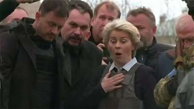 4月8日,欧盟主席冯德莱恩抵达乌克兰,很快在重兵的保护下赶往了布查。面对乌克兰方面摆放整齐的尸体,冯德莱恩做出了非常吃惊的表情。