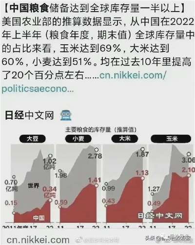 日本的《日经新闻》也跟进炒作,还说中国在过去十年之内一直在提高粮食储备。