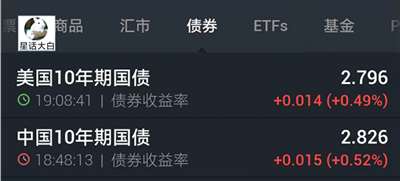 比如当前我们的10年期国债收益率是2.82%,而美国10年期国债收益率是2.796%。