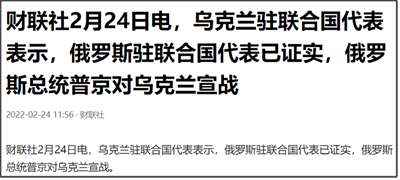 很多人就说,不是2月24日有媒体报道,俄罗斯已经对乌克兰宣战吗?