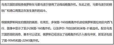 最近,俄罗斯已经开始出动图160轰炸机介入俄乌冲突,其中昨天有网友也拍到图160前往马里乌波尔踩点的视频。