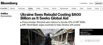 乌克兰寻求全球援助,重建成本高达6000亿美元。