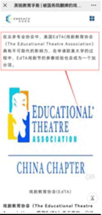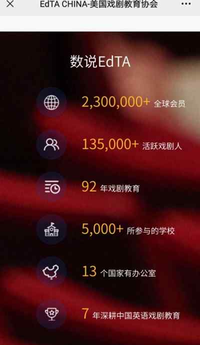 EdTA这个协会声称其使命是在中国建立具有教育性和艺术性的戏剧平台,鼓励学生在戏剧领域的成就,给老师提供培训,向群众宣讲戏剧教育。它真会替中国的戏剧教育与演艺事业“操心”!