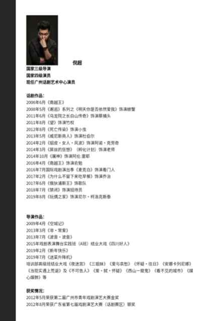 总导演相关信息-广州话剧艺术中心网站和节目单总导演介绍(截图和自拍)