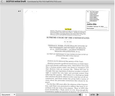 Politico的报道披露了这份泄密的意见草案