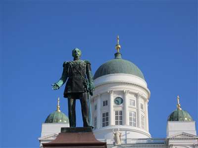 赫尔辛基参议院广场的中央至今矗立着亚历山大二世雕像