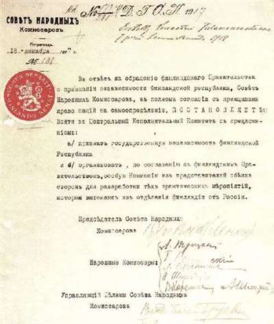 芬兰议会经过了深思熟悉的讨论后,终于在12月6日正式对外宣布:芬兰和俄罗斯至此再无瓜葛,芬兰民族是独立的民族,同时建立彻底独立的共和国。