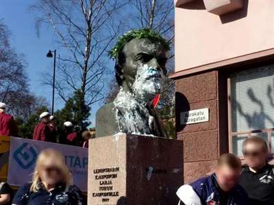 位于芬兰图尔库艺术博物馆前的列宁像遭到污损